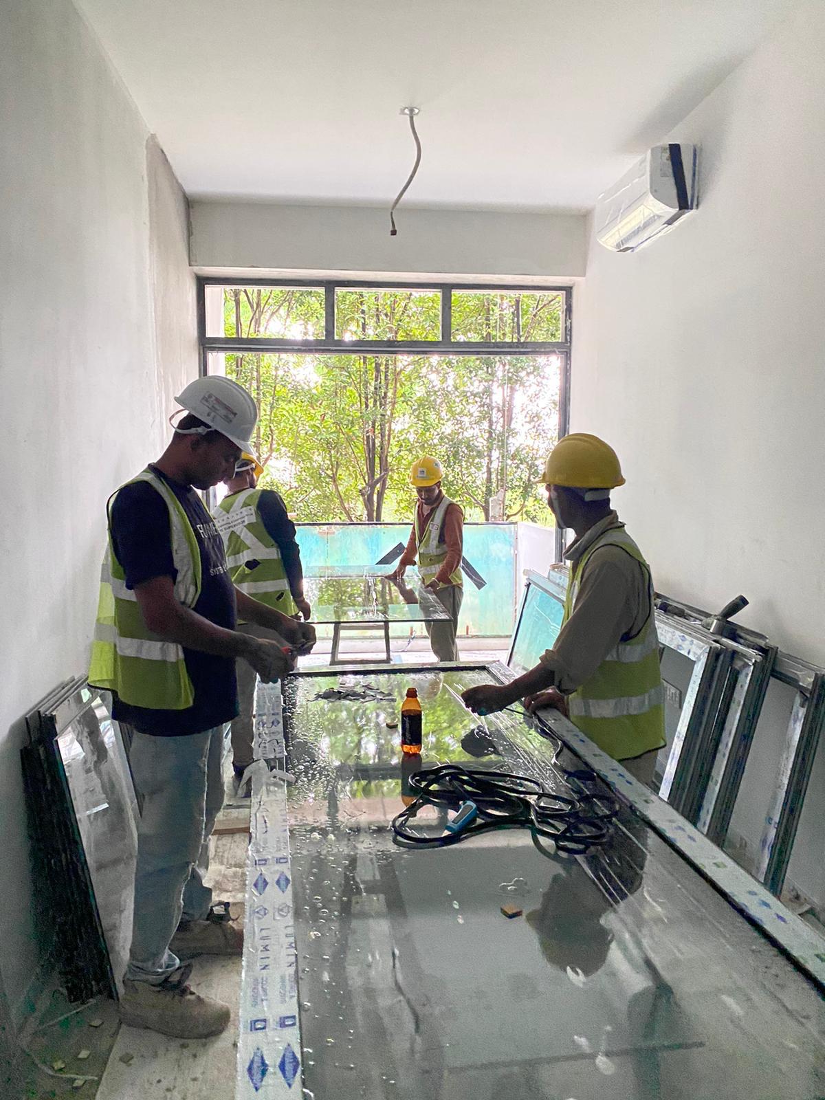 AJ Panel Crafts installs sleek and durable office glass walls, enhancing workspace aesthetics, promoting natural light, and creating a modern, open environment.